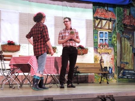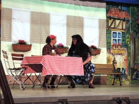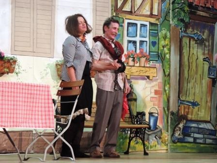 Als Bauernpaar Beate und Hans Trinkaus auf dem Hofe spielten Christiane Weber und Daniel Bauer die beiden Hauptrollen im Stück. Christiane, gewohnt extrem und beneidenswert textsicher, zeigte in so mancher Szene, dass sie schlagkräftige Argumente hatte, welche dem einen oder anderen Mitspieler auch nach den Aufführungen in Erinnerung blieb. Daniel konnte in der Rolle als Esmeralda Pauli wiederum zeigen, dass es auch mit Damenbart geht und einer Rolle in der Geisterbahn nichts im Wege steht.