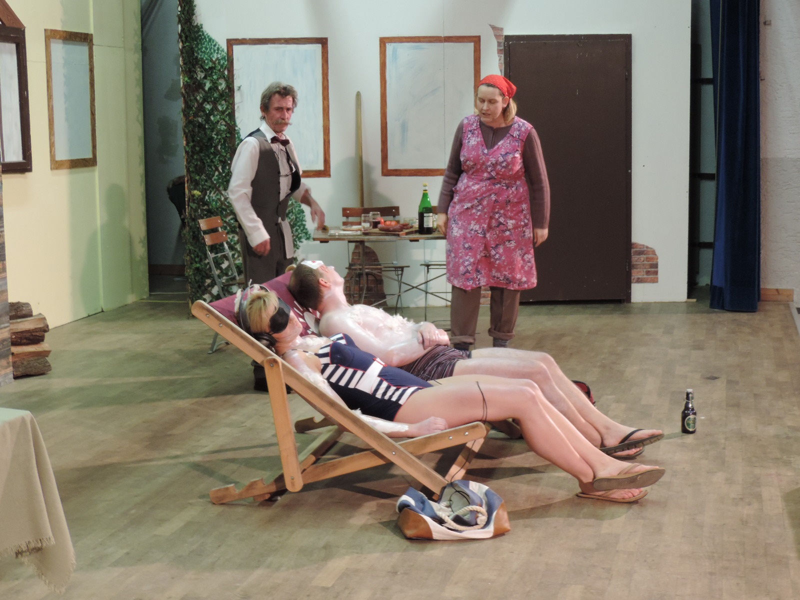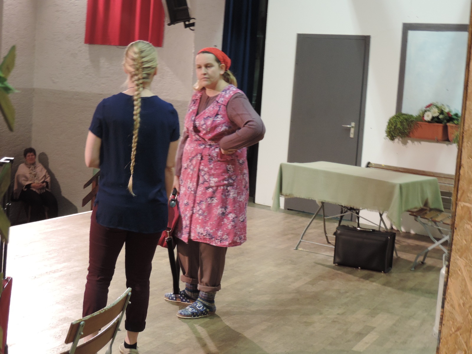 Mit großer Aufmerksamkeit und Konzentration verfolgte Arno Neumaier als Souffleur das Stück und kam selten zum Einsatz und Raimund Hutt sorgte für den richtigen Ton. Für das Bühnenbild war Bernd Vogel verantwortlich.